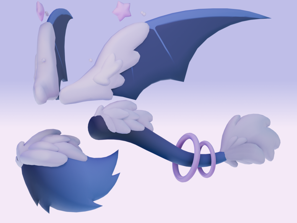 Fully rigged Astro cosmic Wing and Tail set inspired by Furality Somna and space for VRChat avatars. Works great for furry, fantasy, or creature designs.